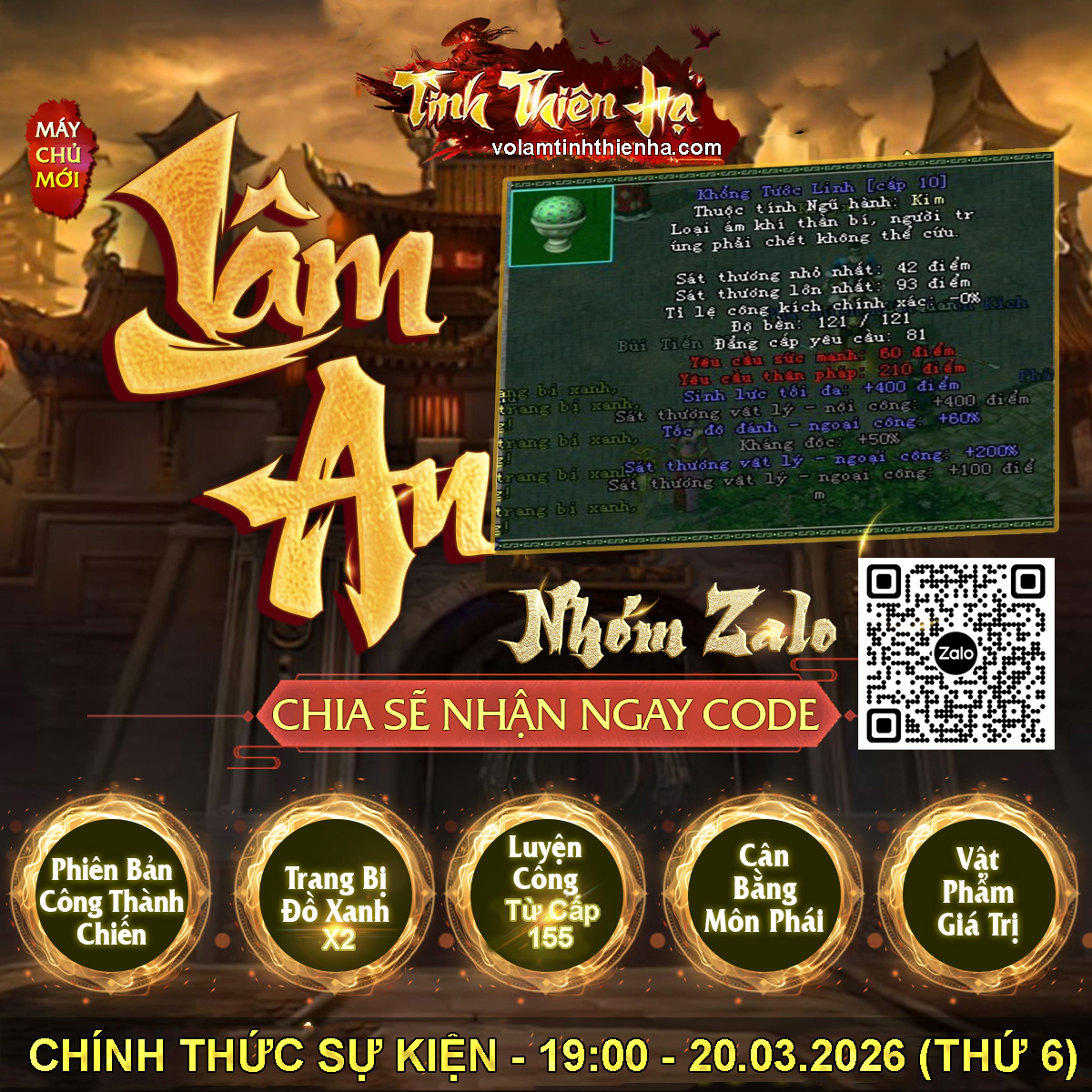 Sự kiện chính thức khai mở máy chủ PK Lâm An Từ 19h00 ngày 20/03/2026